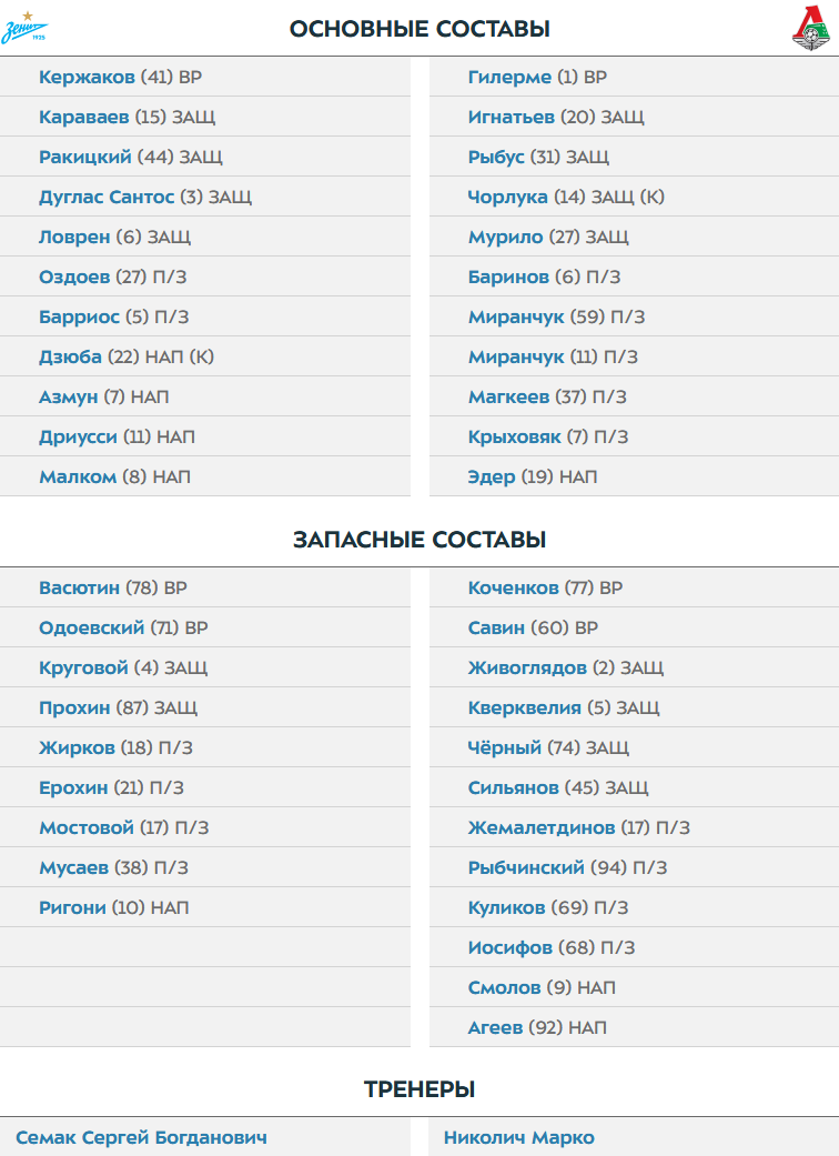 lokomotiv i zenit nazvali startovye