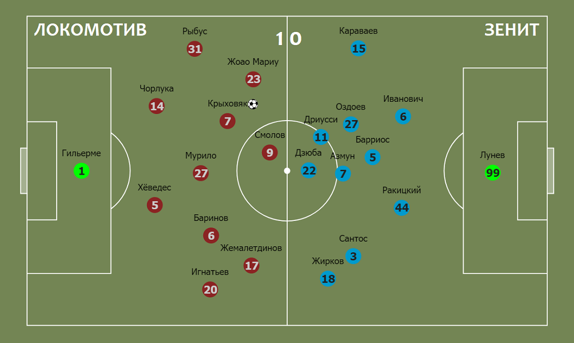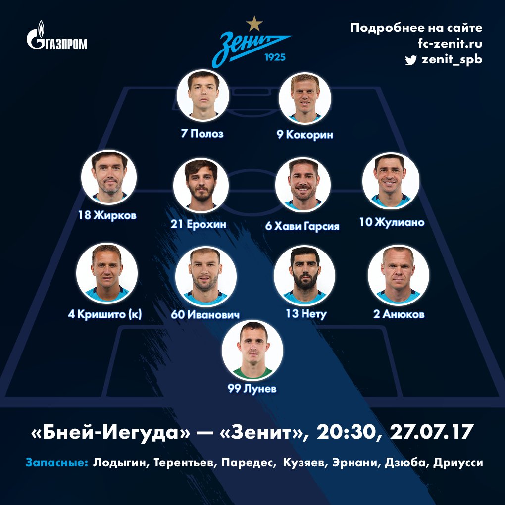 startovyj sostav i rasstanovka na match protiv fk zenit vkontakte