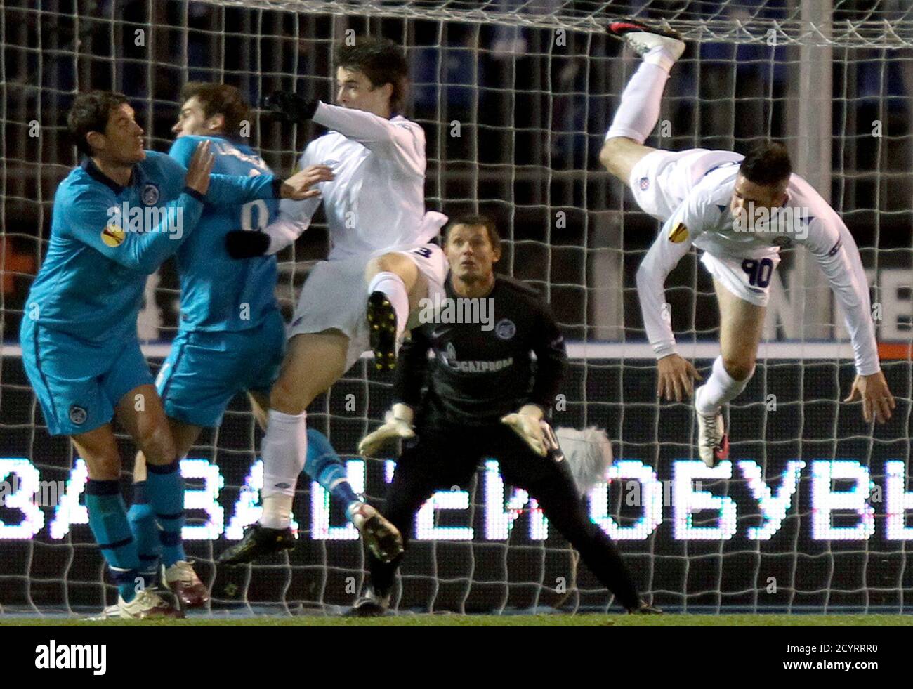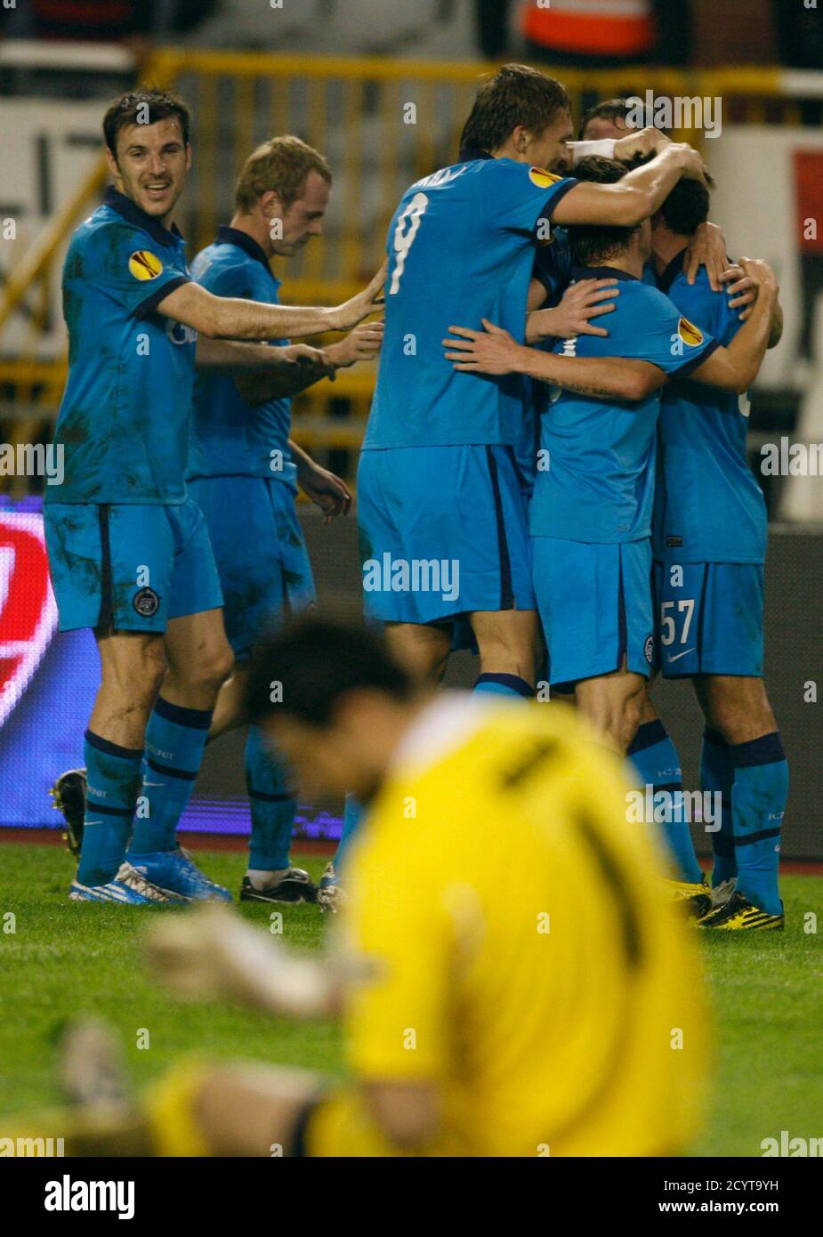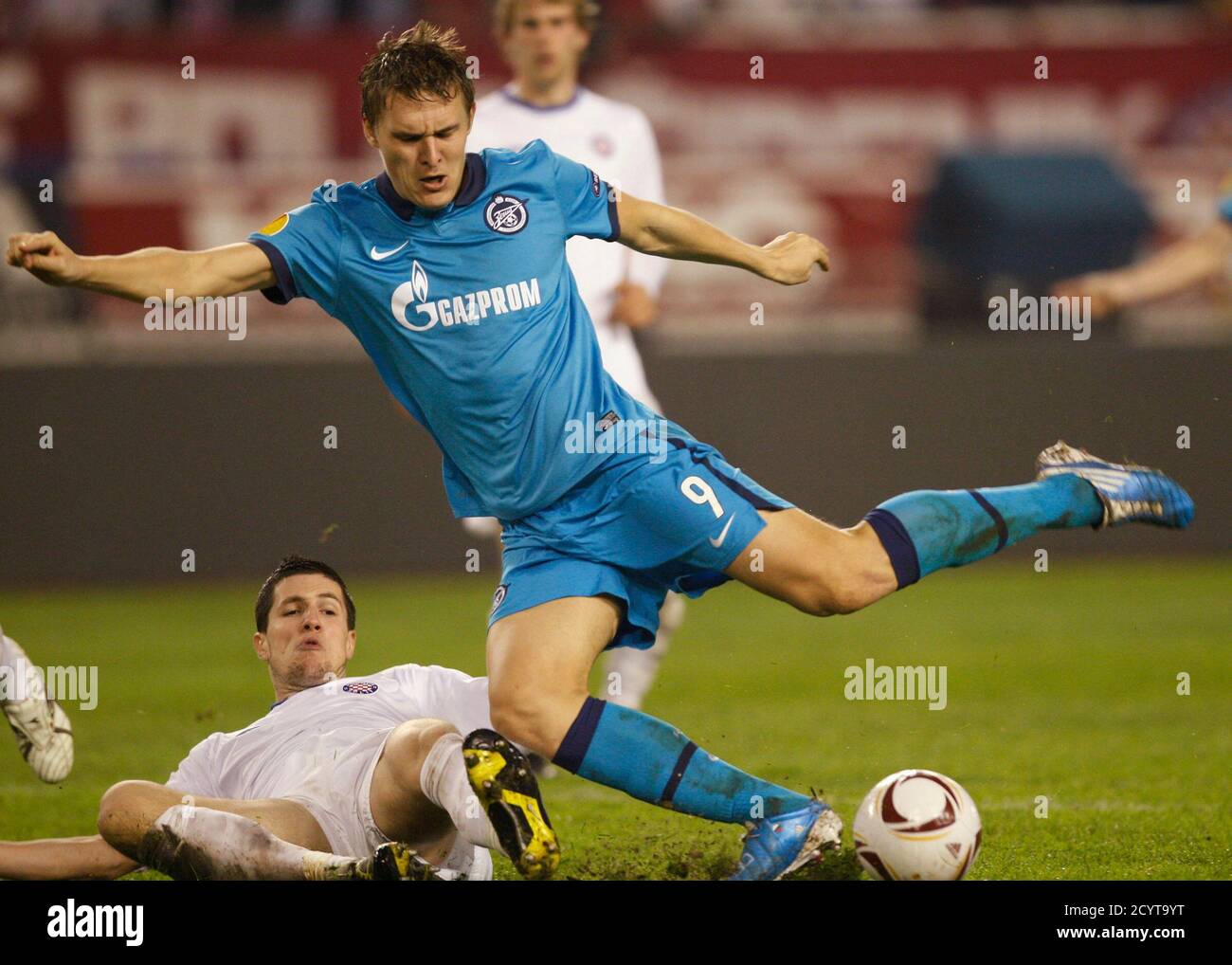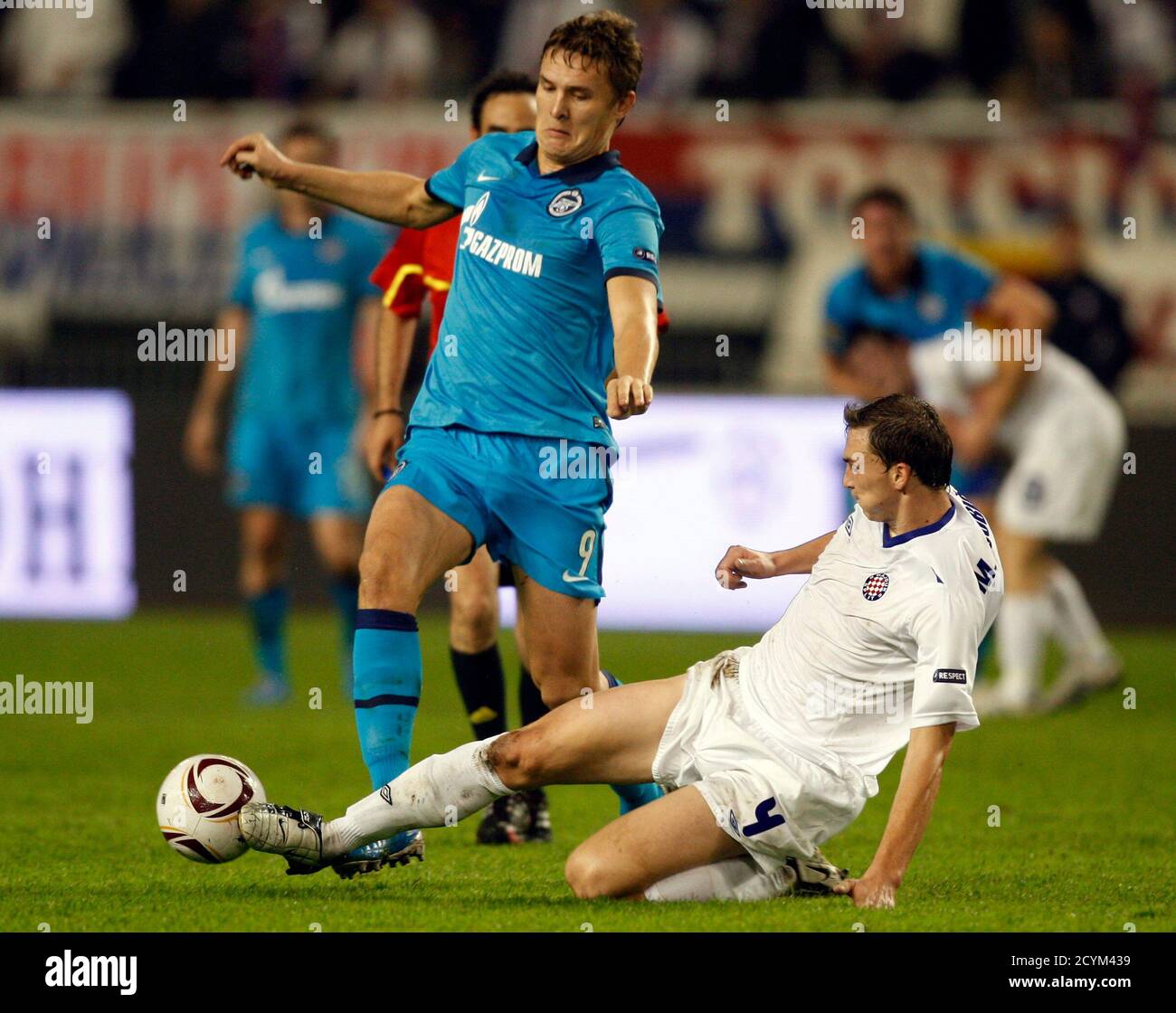 https www alamy com hajduk splits senijad ibricic r and ante vukusic challenge zenit st petersburgs yuri zhevnov nicolas lombaerts 2nd l and ivica krizanac l during their europa league soccer match at the petrovsky stadium in stpetersburg october 21 2010 reutersalexander demianchukrussia tags sport soccer image378537012 html