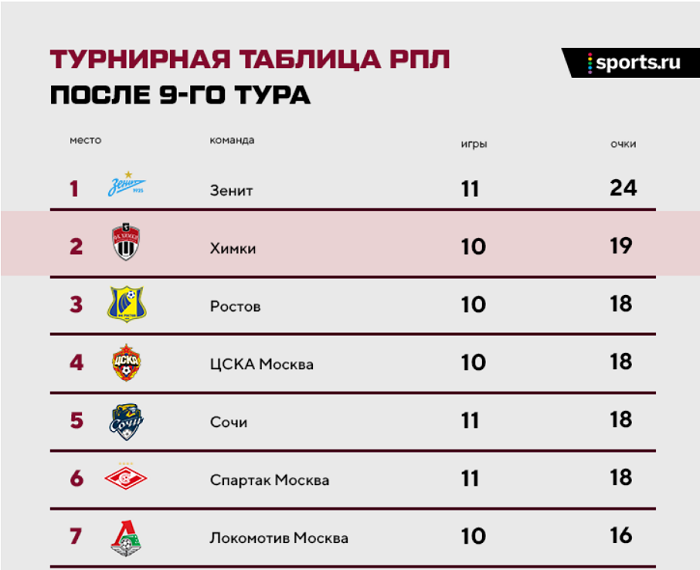 statistika chempionata rossii zenit