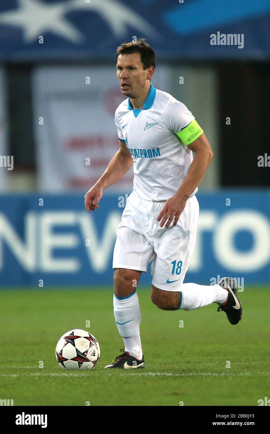 https www alamy com villarreals jon tomasson l and zenit st peterburgss konstantin zyrianov fight for the ball during their uefa cup third round soccer match at the madrigal stadium in villarreal february 21 2008 reutersheino kalis spain image379707986 html